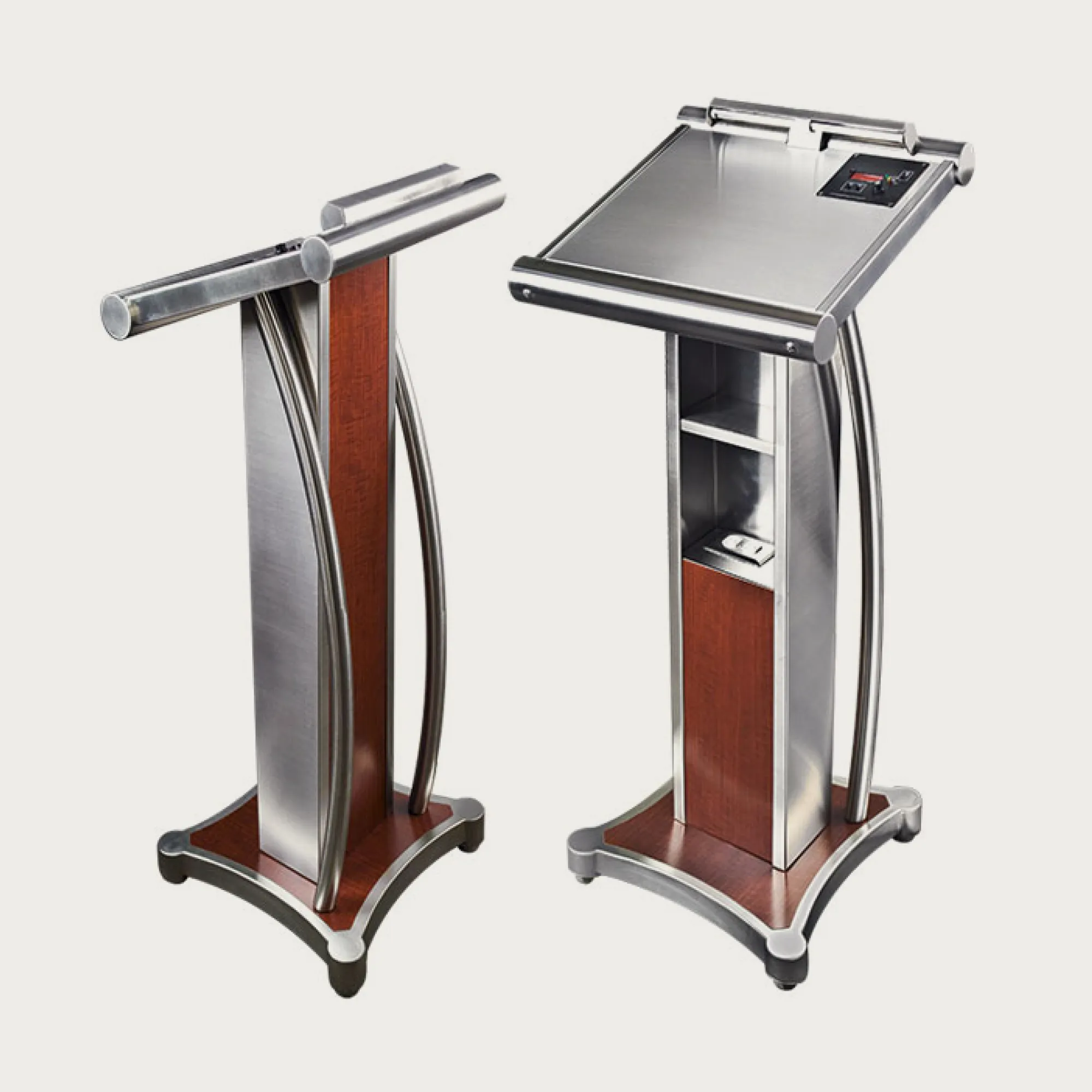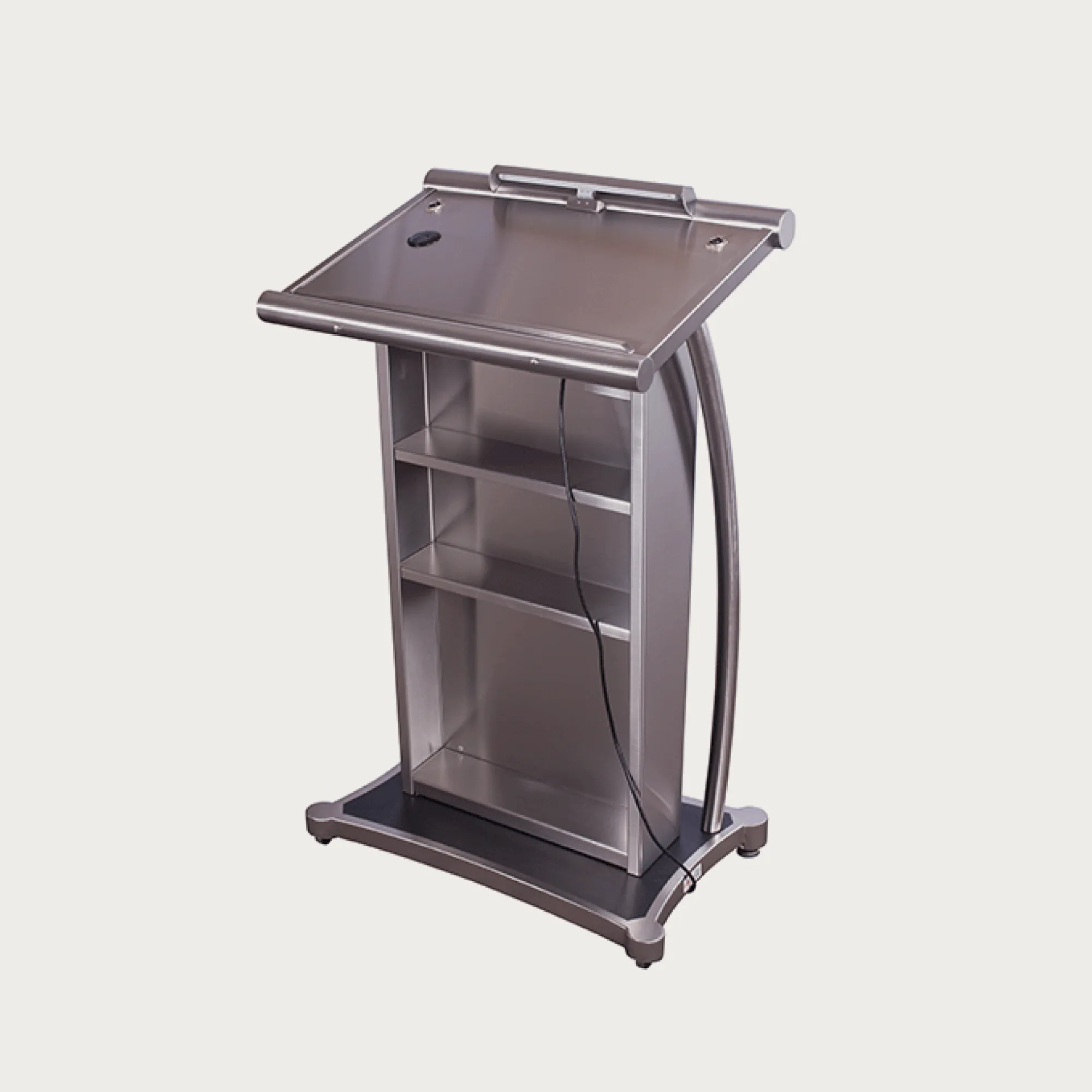Crafted with high-quality wood laminate, this lectern offers durability and resistance to everyday wear and tear. The stainless steel accents add a contemporary touch, enhancing the overall aesthetic appeal.