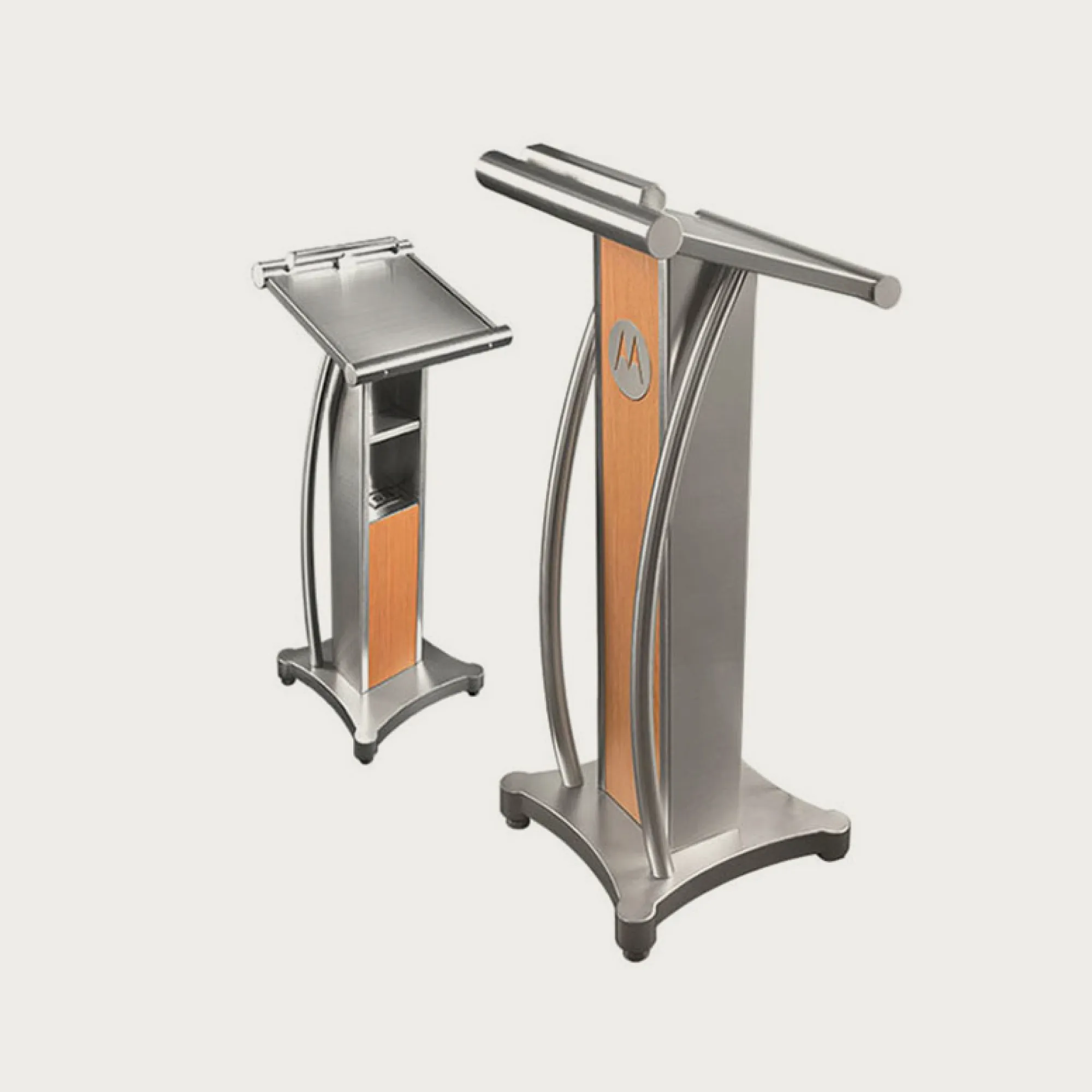Introducing our Wave Series Lectern, a stylish and functional addition to any speaking or presentation environment. This lectern combines the durability of wood laminate with the sleekness of stainless steel, creating a modern and eye-catching design.