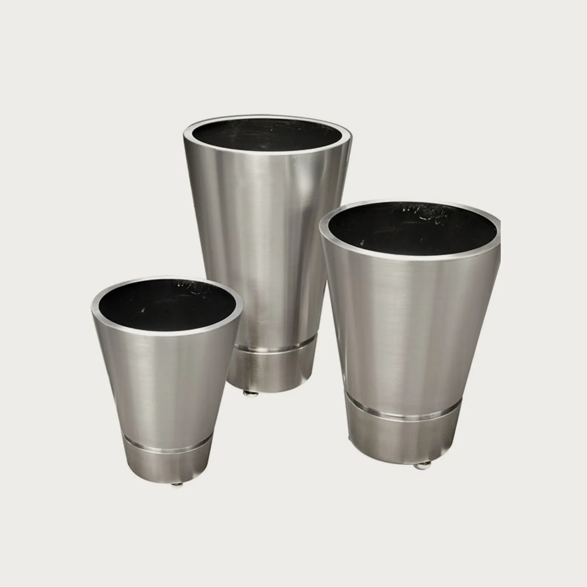Whether used individually or in a group, the Planter Cone Series adds a sleek and stylish touch to your outdoor decor. Their modern design, satin stainless steel finish, and versatile sizes make them a versatile and fashionable choice for enhancing your outdoor space.