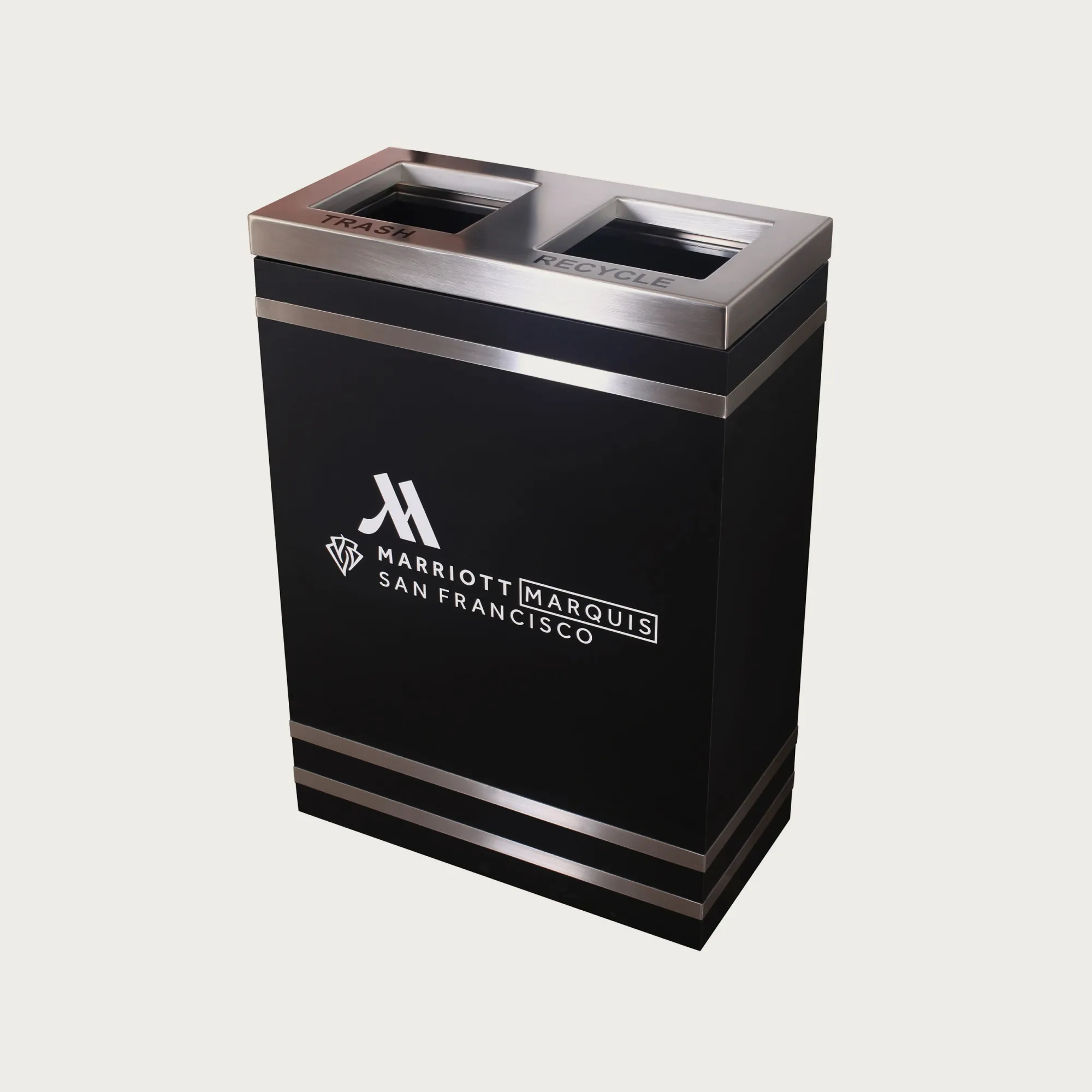 Each size offers a different capacity to suit your waste disposal needs. The Bellini-R Series Recycle Receptacle is designed for public spaces, commercial establishments, or any area emphasizing efficient waste management. It seamlessly combines practicality and aesthetics, offering a customizable solution that enhances the overall environment.