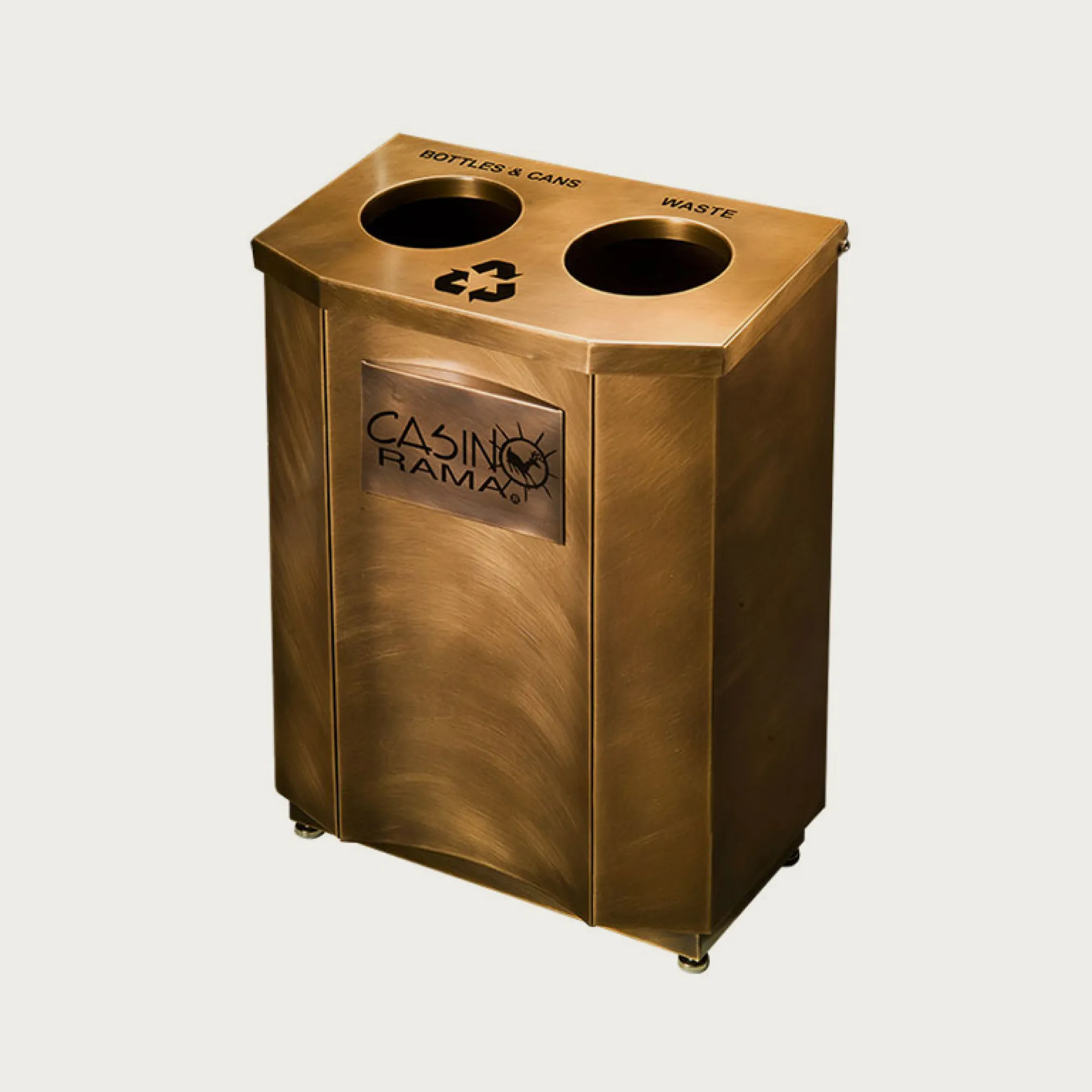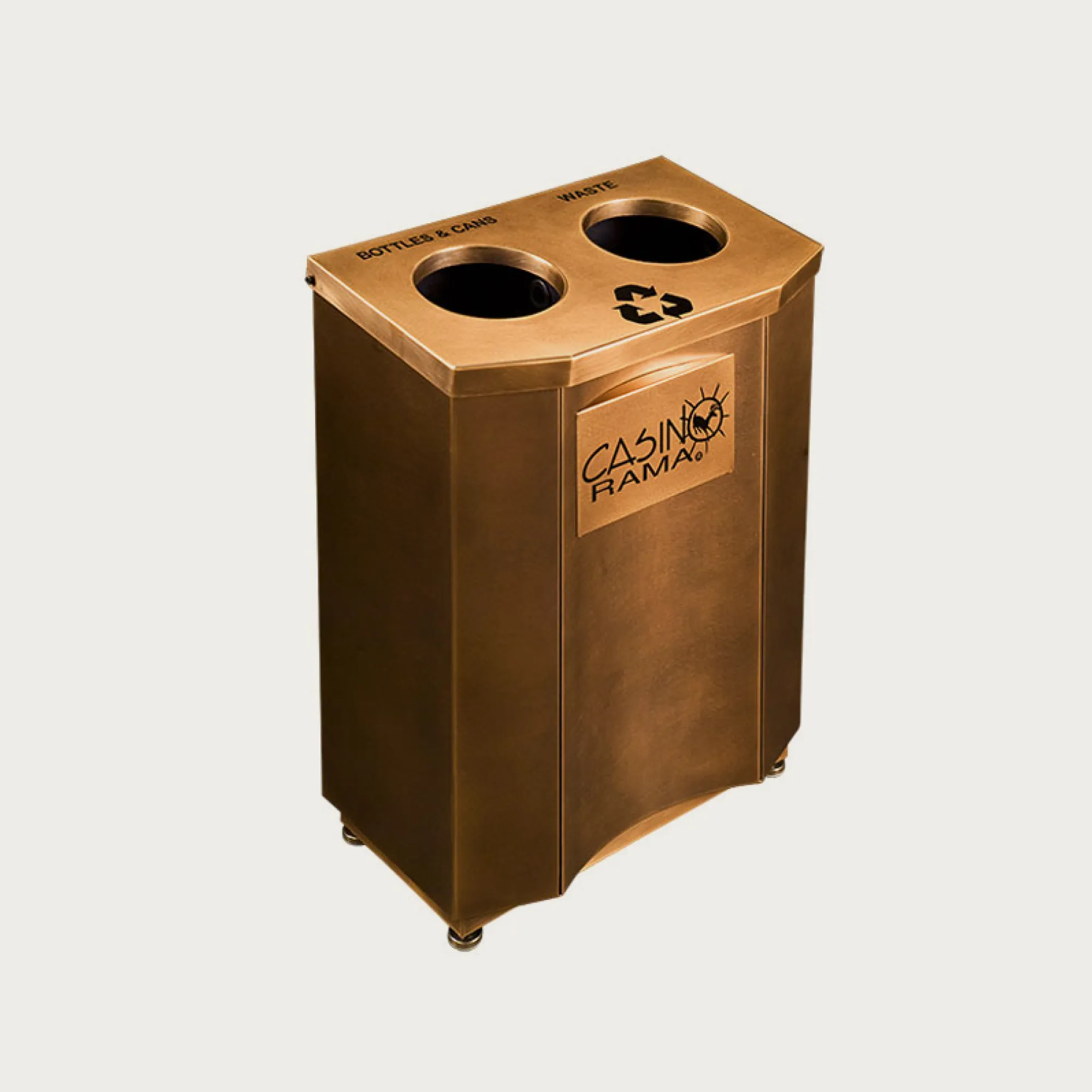 Introducing the Benois Series Recycle Receptacle, a perfect blend of elegance and functionality. Crafted with a material finish of Non Directional Antique Bronze for the top and Satin Stainless Steel for the body, this receptacle offers a sophisticated solution for efficient waste management.